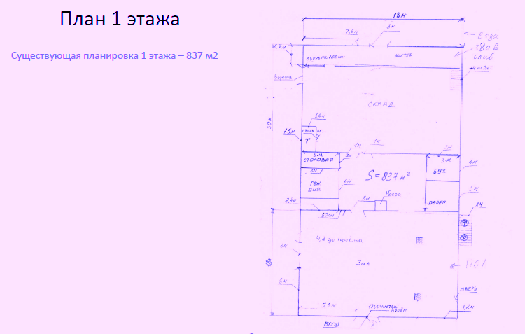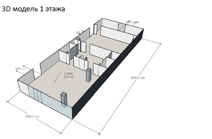 Общая площадь - 1485 кв.м. 1 - этаж (837кв.м), 2 - этаж (648кв.м)